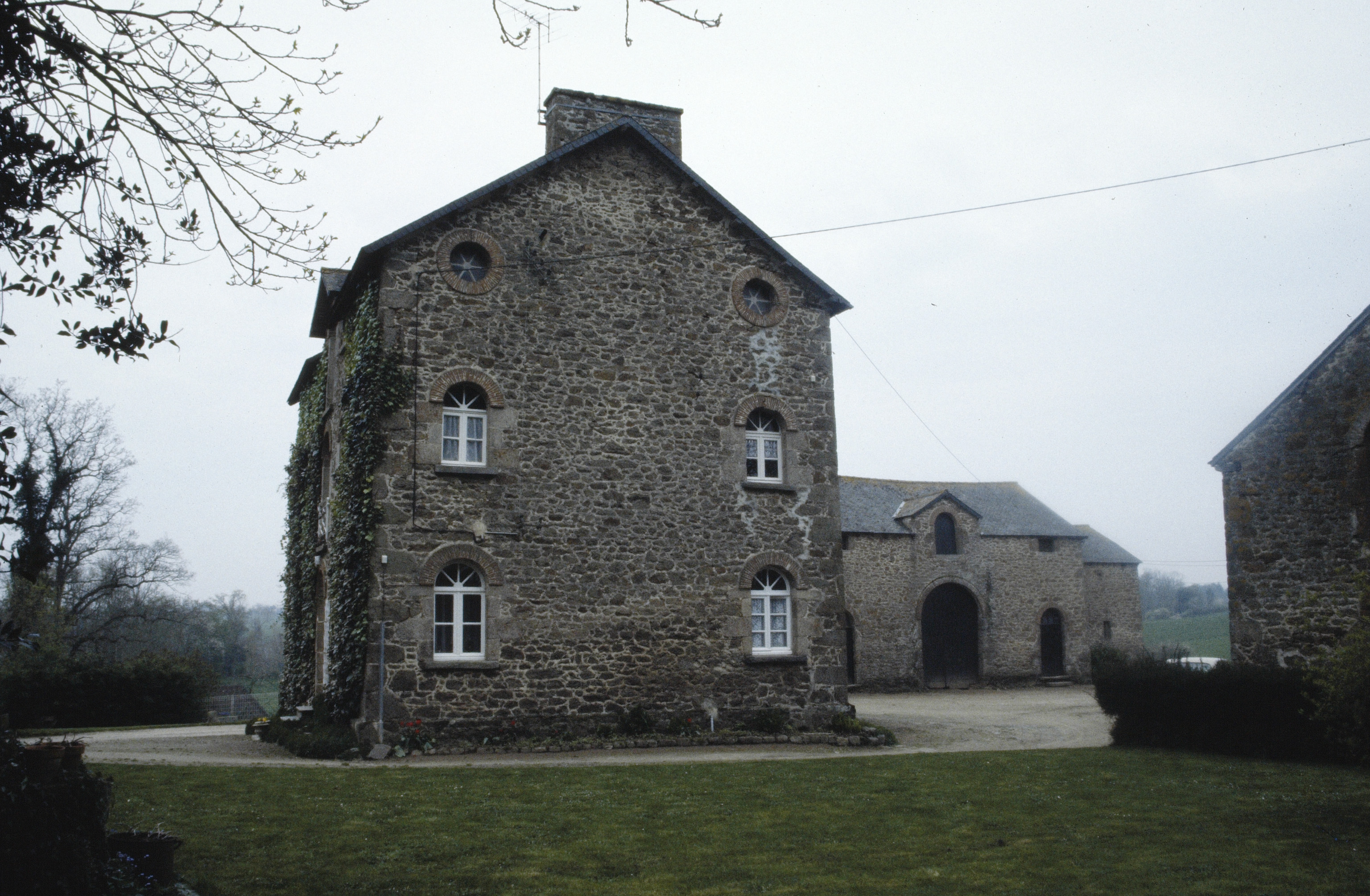Pignon de l'hbaitation de la ferme de la Porte du château de Largentaye(état en 1993)Immatriculation
