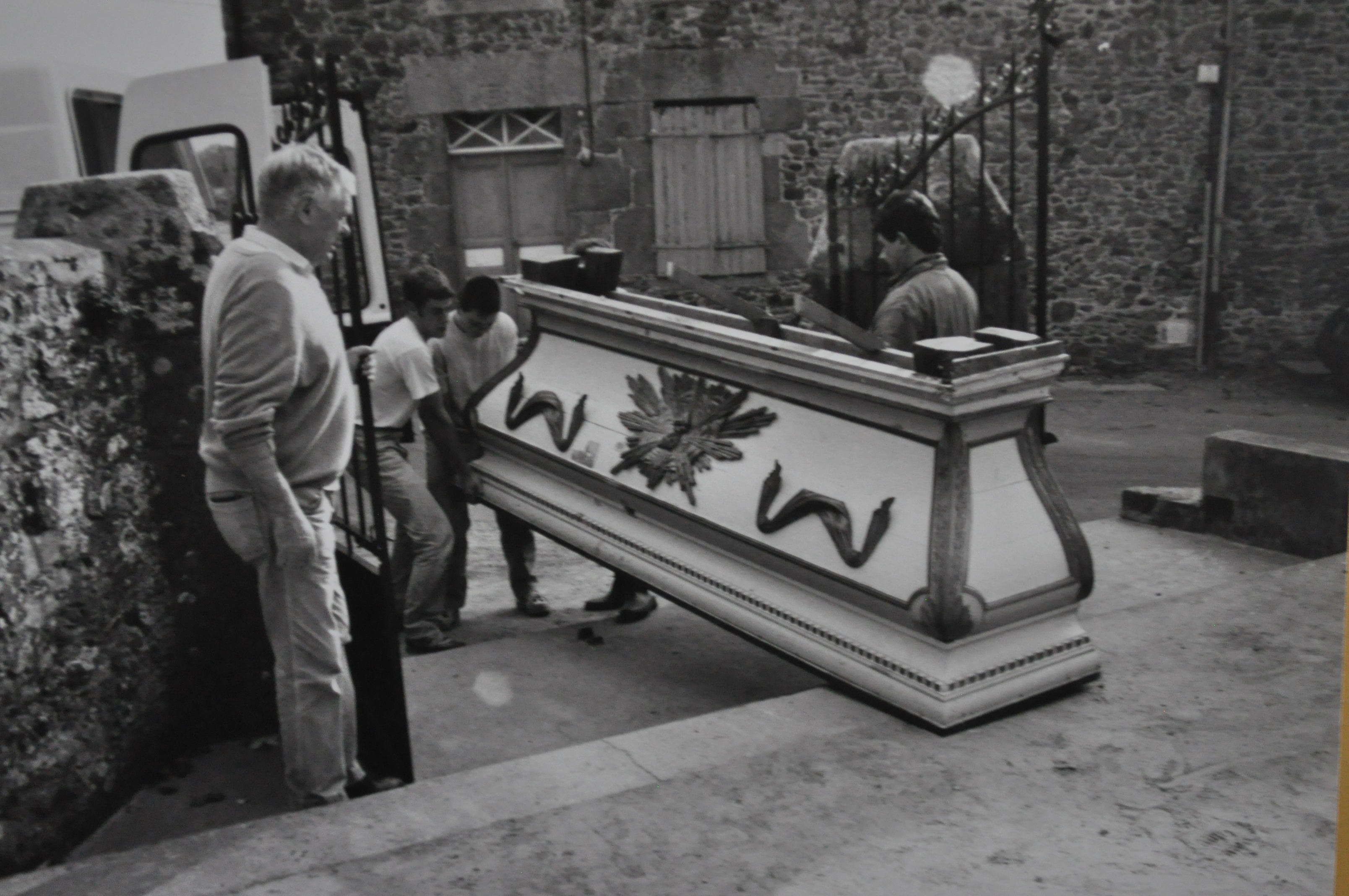 Vue du déplacement du maître-autel lors de sa restauration.Immatriculation