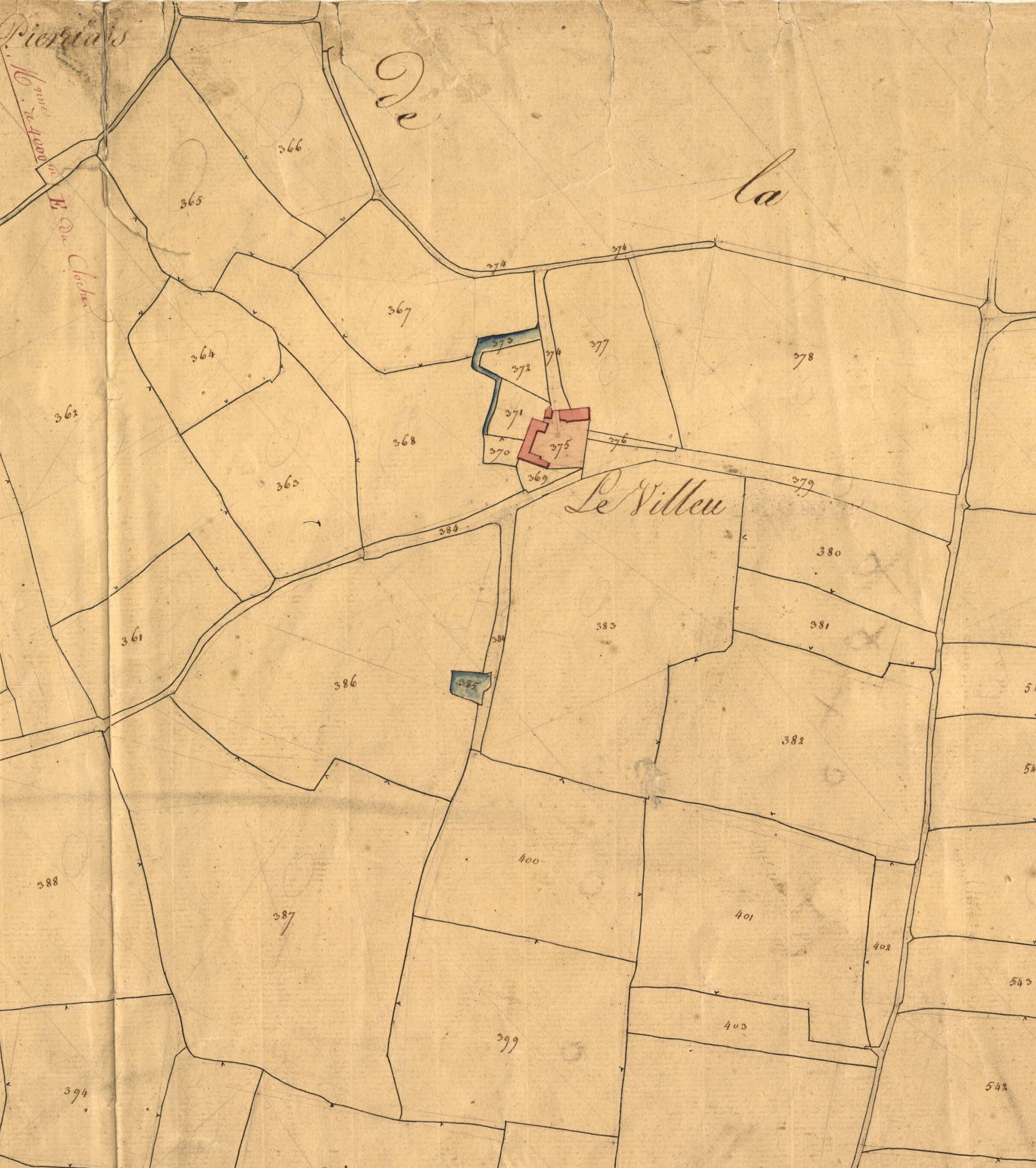 Extrait du cadastre ancien de 1827, manoir de Le Villeu, feuille F2Immatriculation