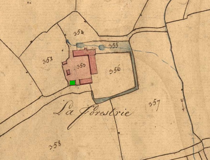 Emplacement de la chapelle de la Foresterie, extrait de section E1 du cadastre ancienImmatriculation