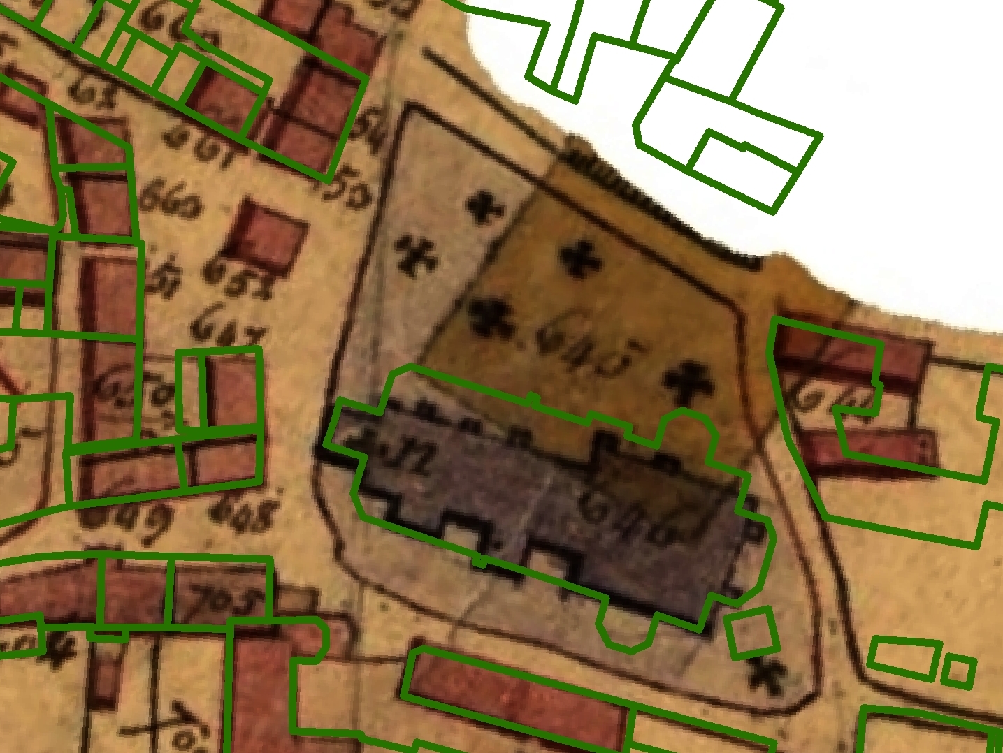 Superposition cadastre ancien et cadastre actuel, place de l'égliseImmatriculation