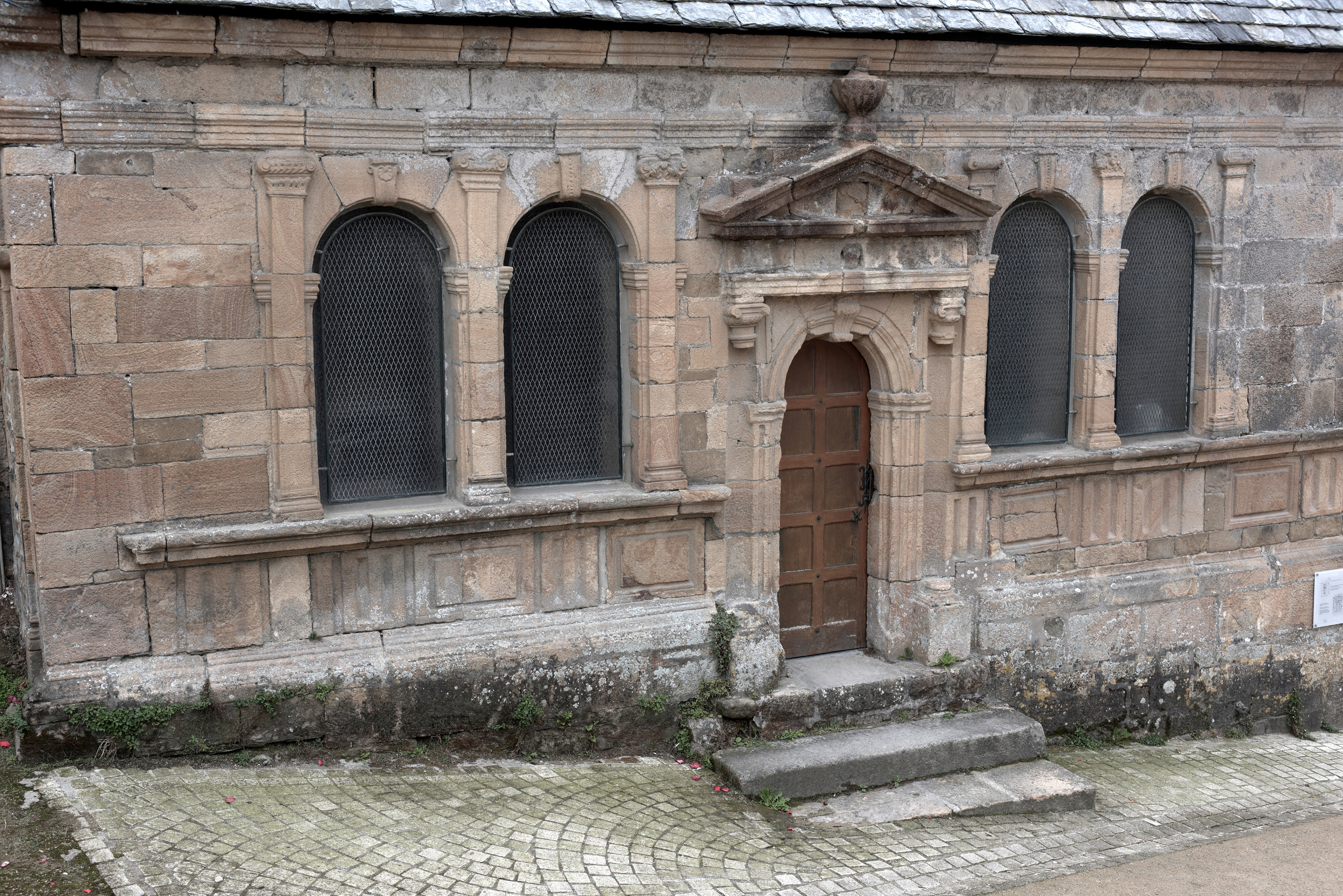 Vue de détail de la façade de l'ossuaireImmatriculation
