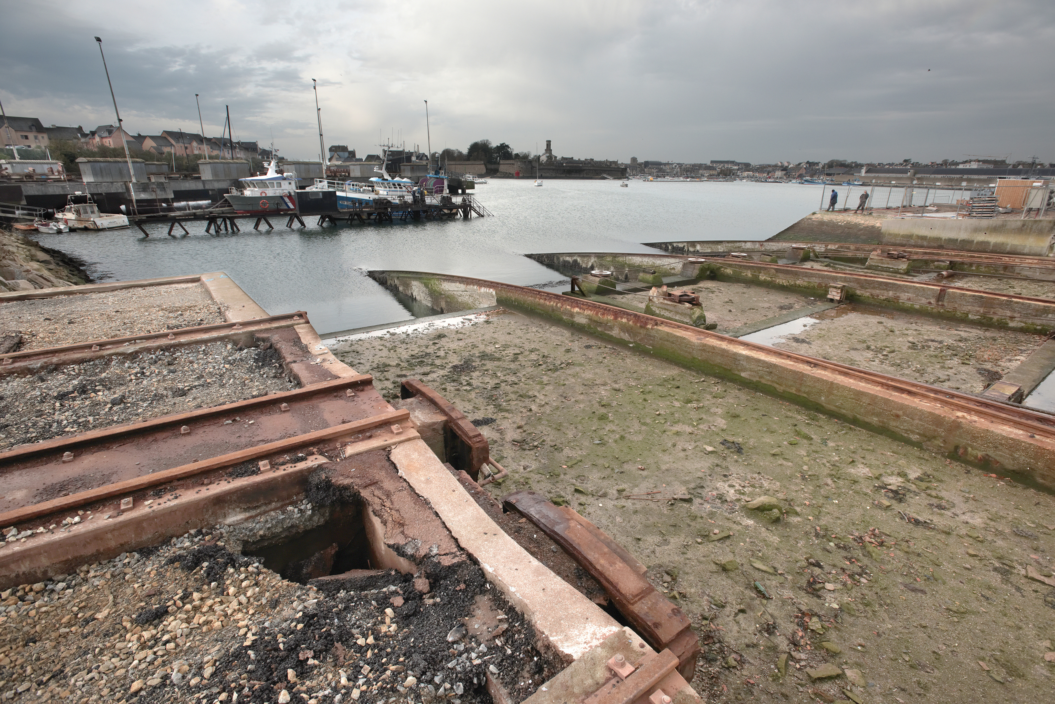 Rails sur lesquels coulisse la passerelle (partie centrale) ; bers (partie latérale)Immatriculation