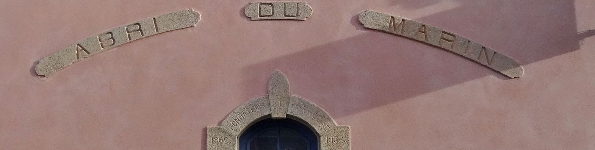 Inscription gravée en pignon : "Fondateur Thézac" / "1862" / "1936"Immatriculation