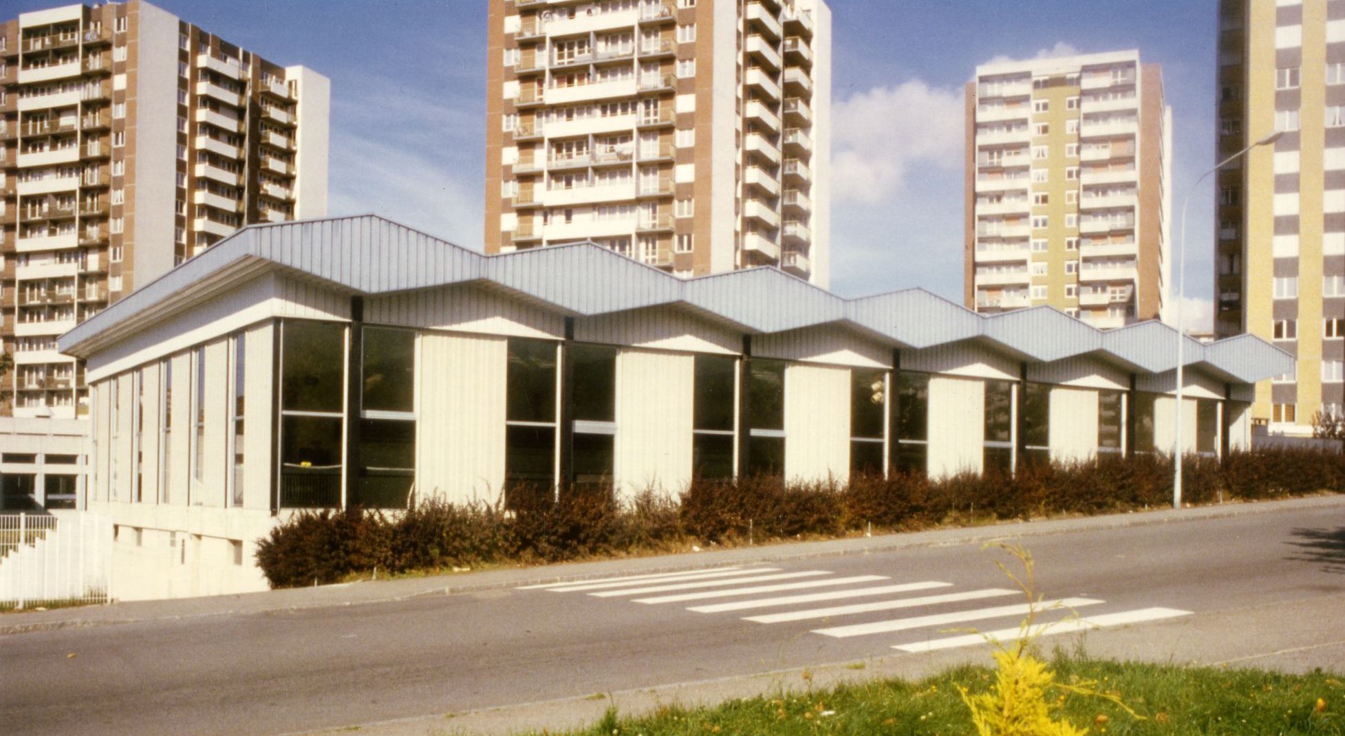 AC Brest : 13 Fi 4343. La piscine de Kerhallet, vue de la rue de Normandie. S. d.