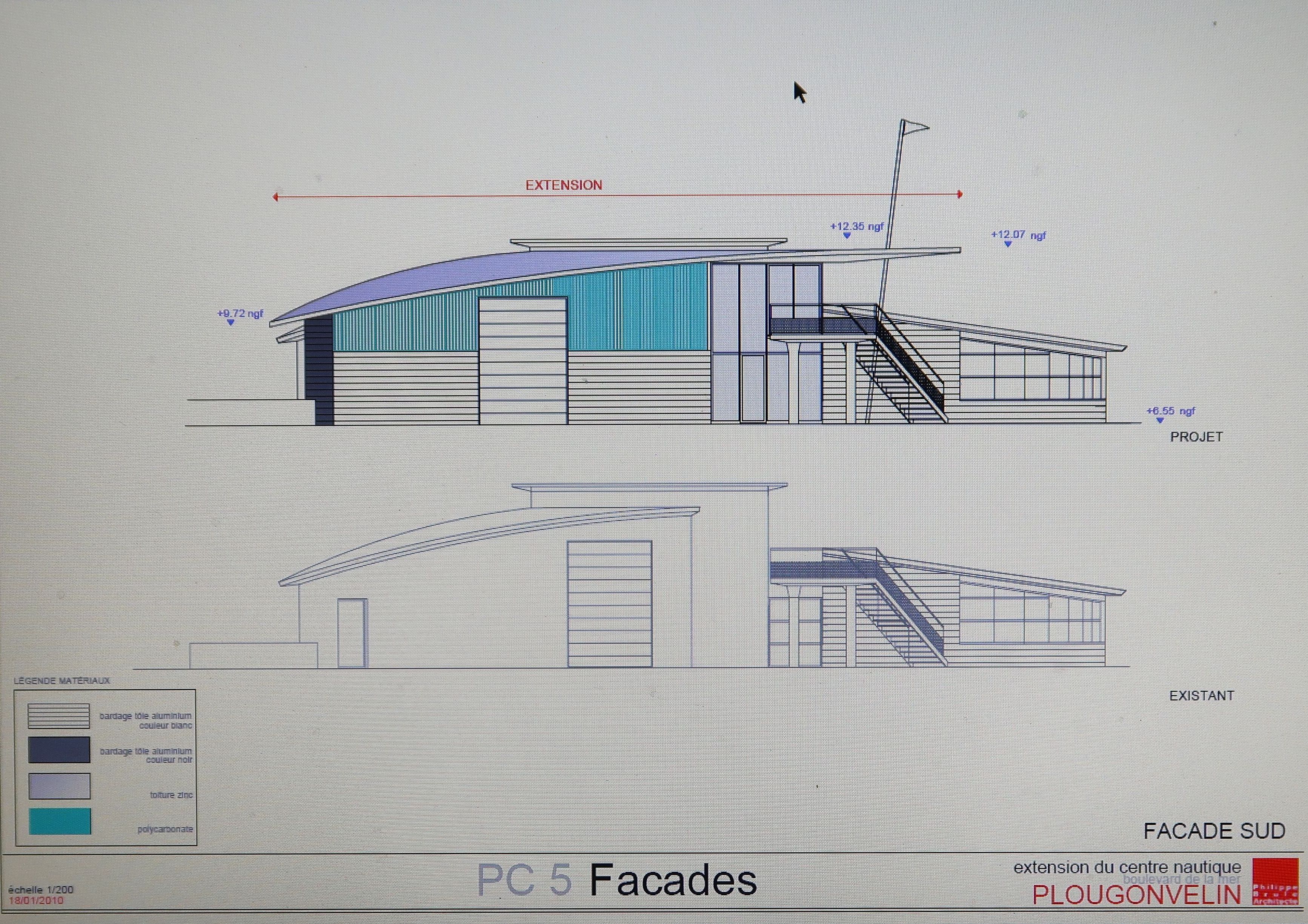 Projet d'extension : façade sudImmatriculation