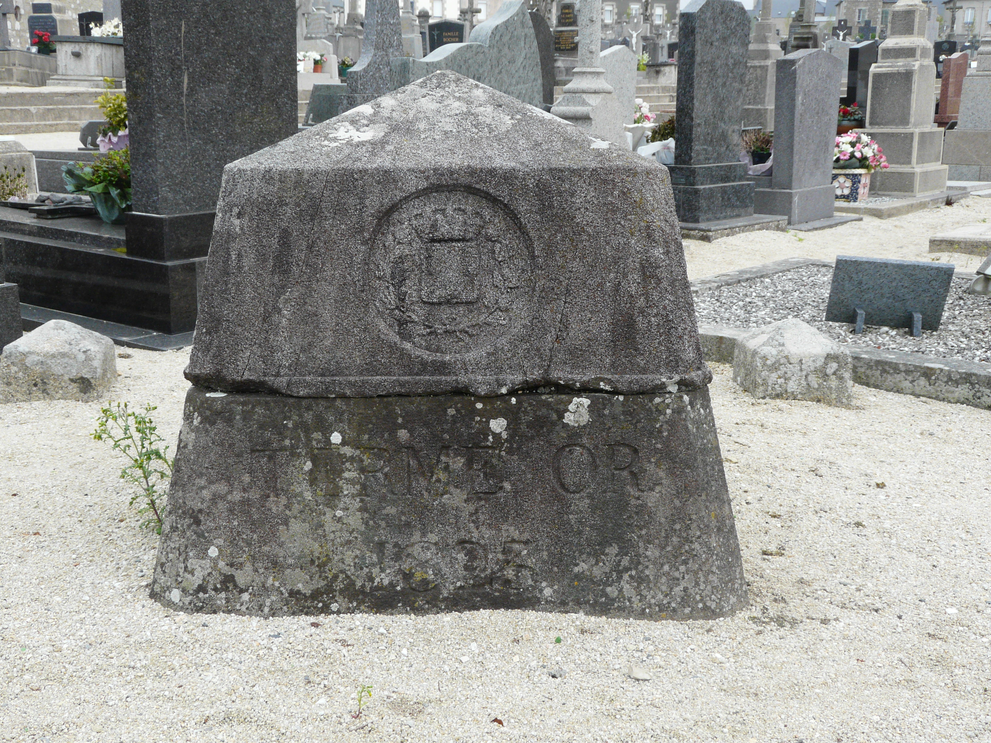 Borne géodésique, dans le cimetière (Plouescat),