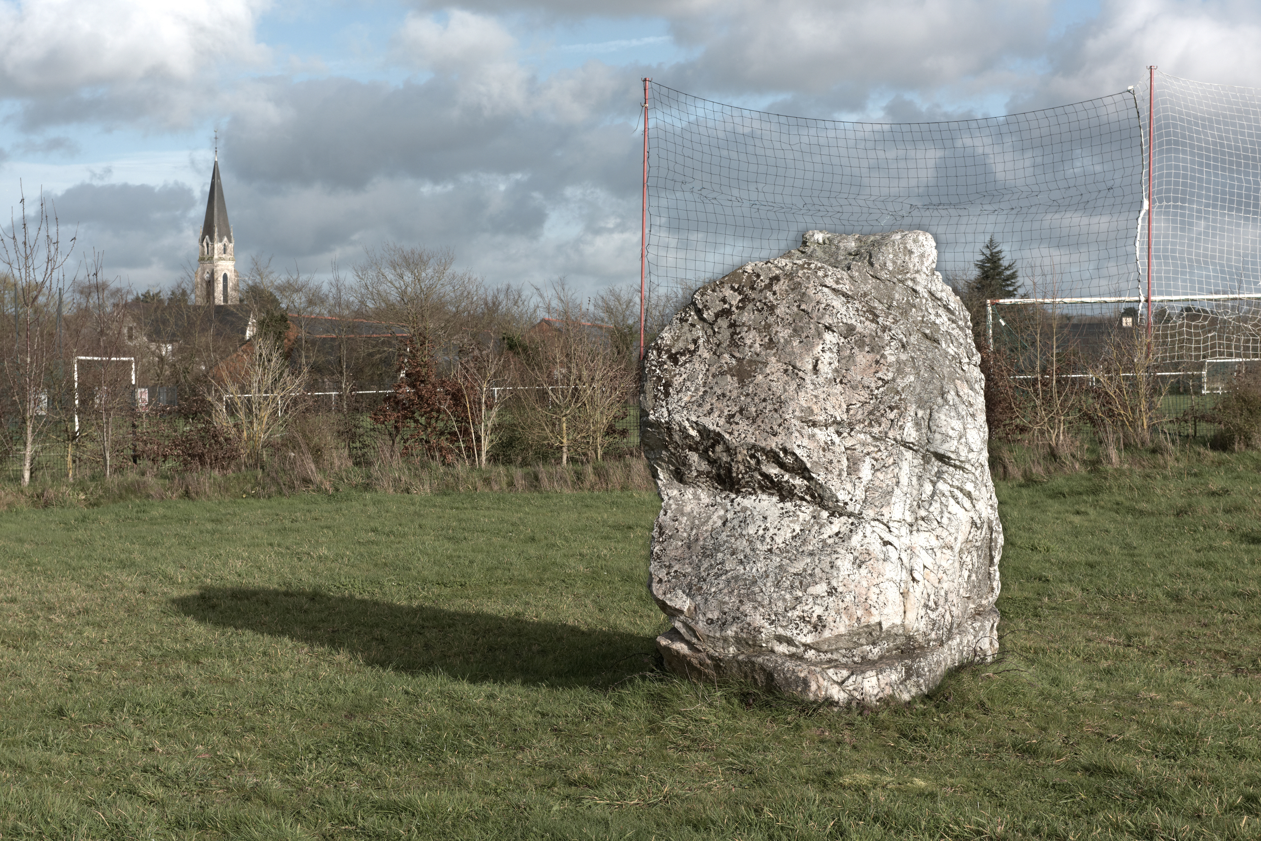 Vue du menhir en quartz blanc du Champ HorelImmatriculation