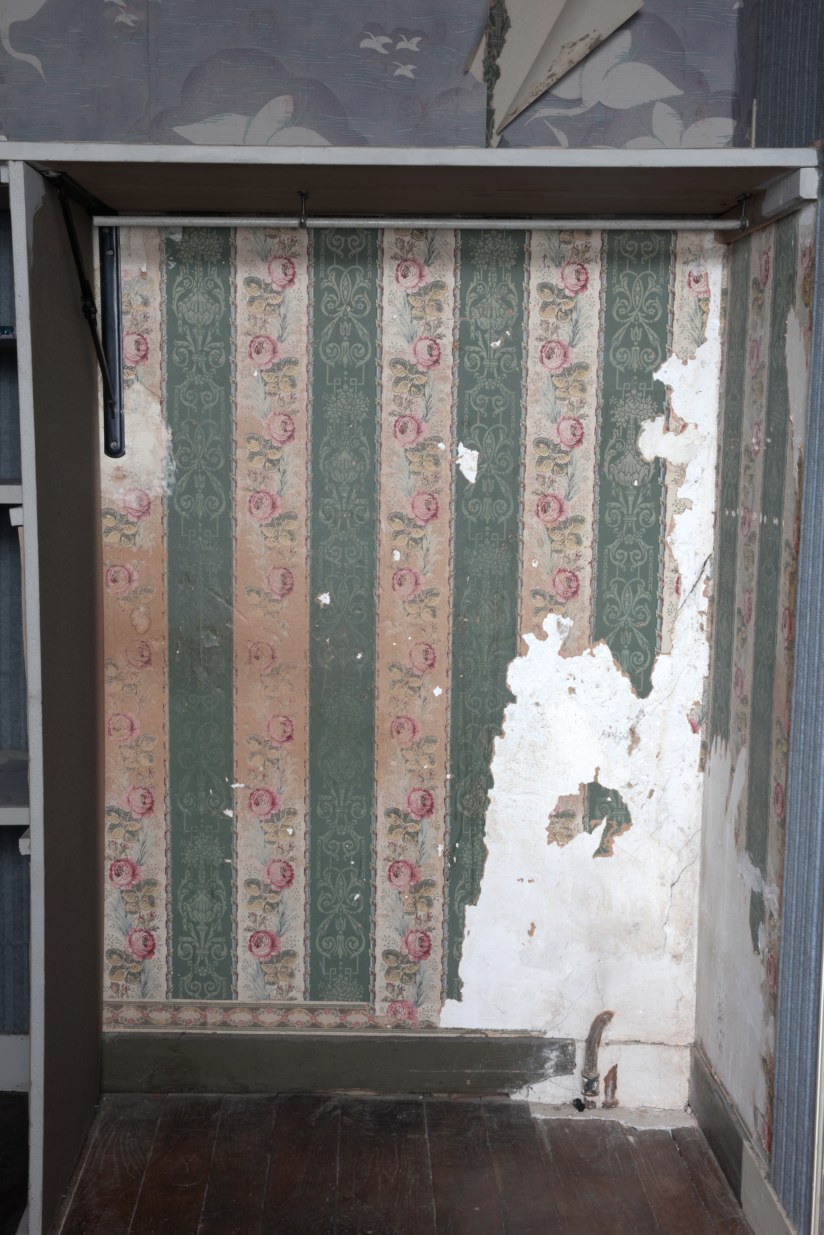 Vue de l'ancien papier peint dans une chambre de l'étageImmatriculation