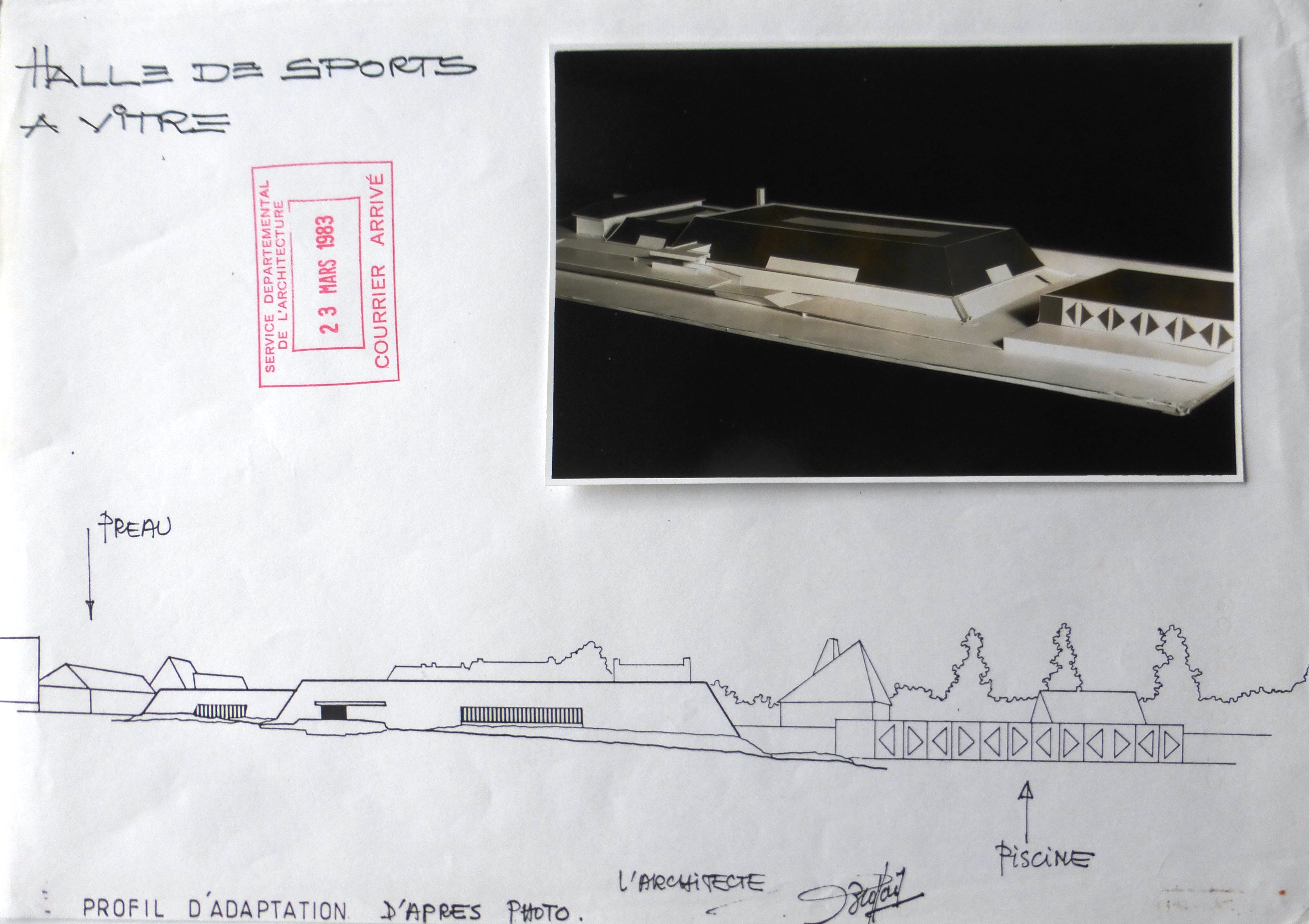 AC Vitré : 3465. Plan d'adaptation et maquette. Ph. Brossais, 1983.