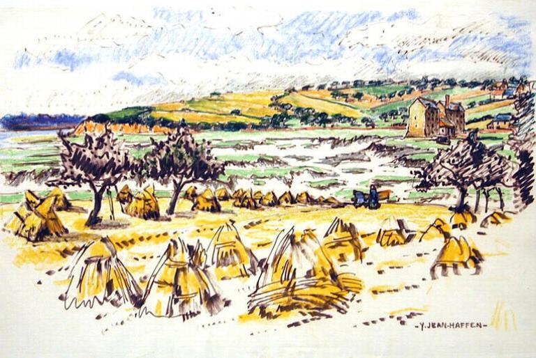 La minoterie Quinard, dessin aquarellé par Yvonne Jean-HaffenImmatriculation