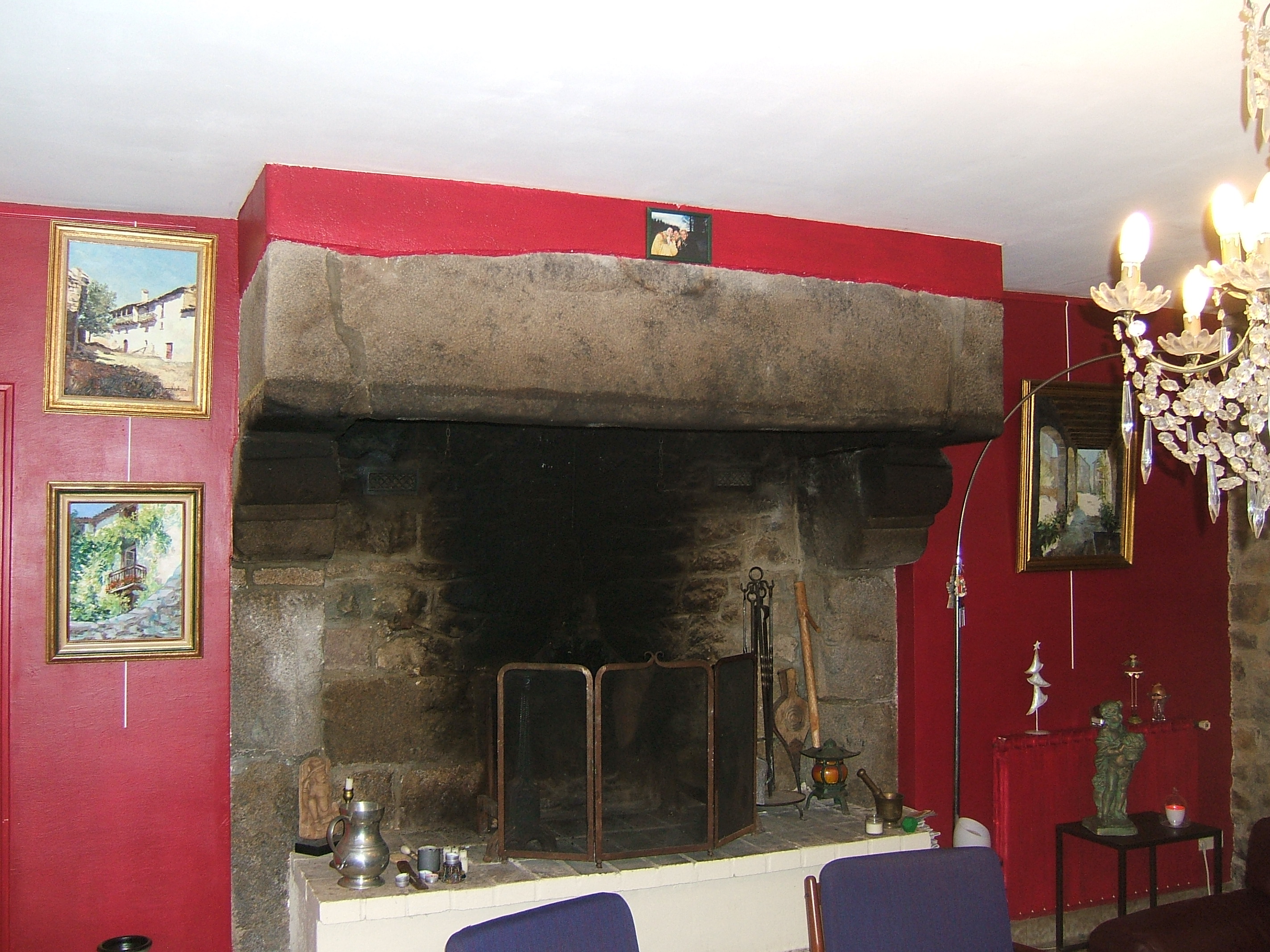 Le Chenay : imposante cheminée située dans l’axe central de la pièce à vivre.Immatriculation
