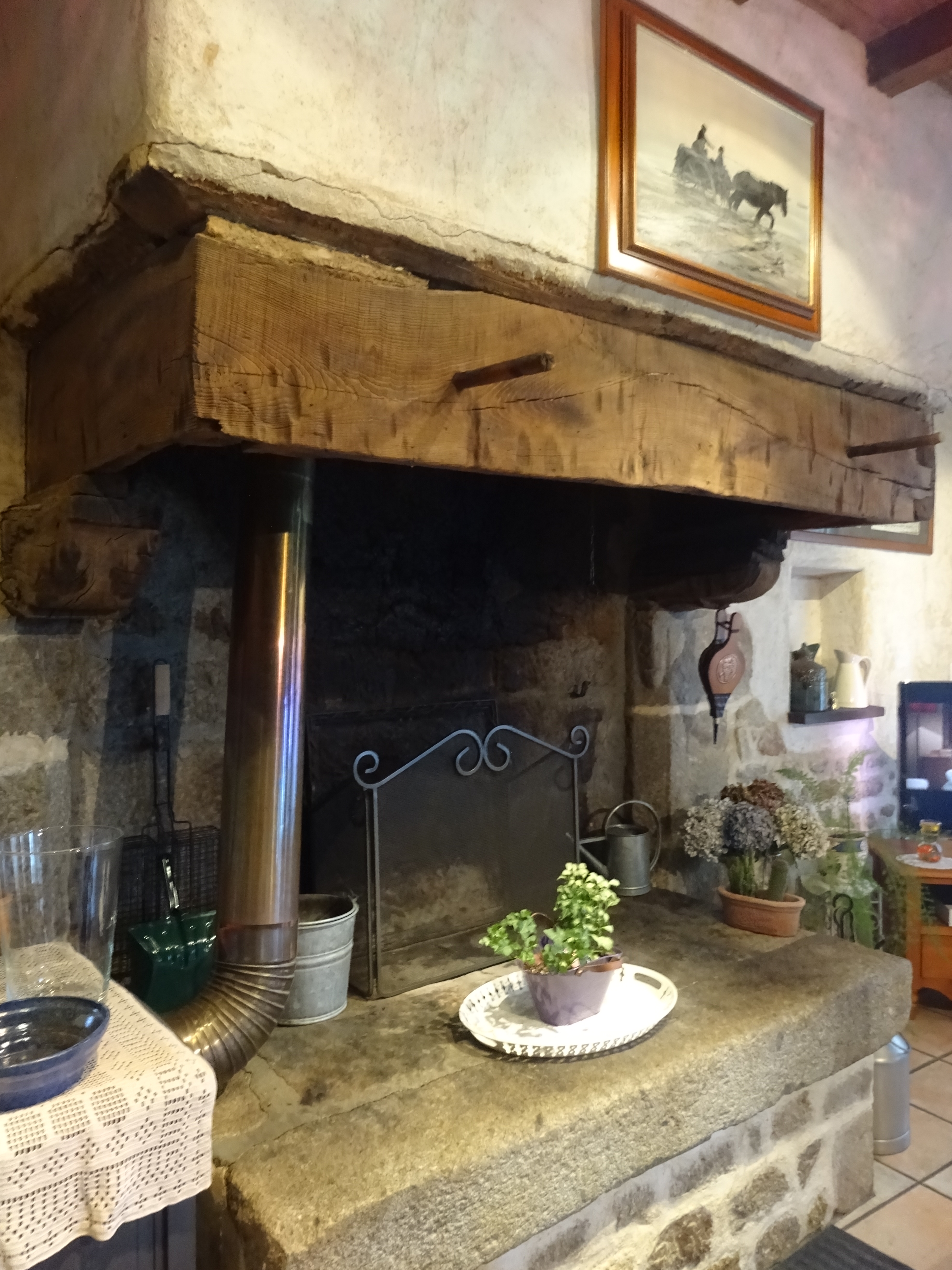 La Robinière : cheminée aux piédroits sculptés.Immatriculation