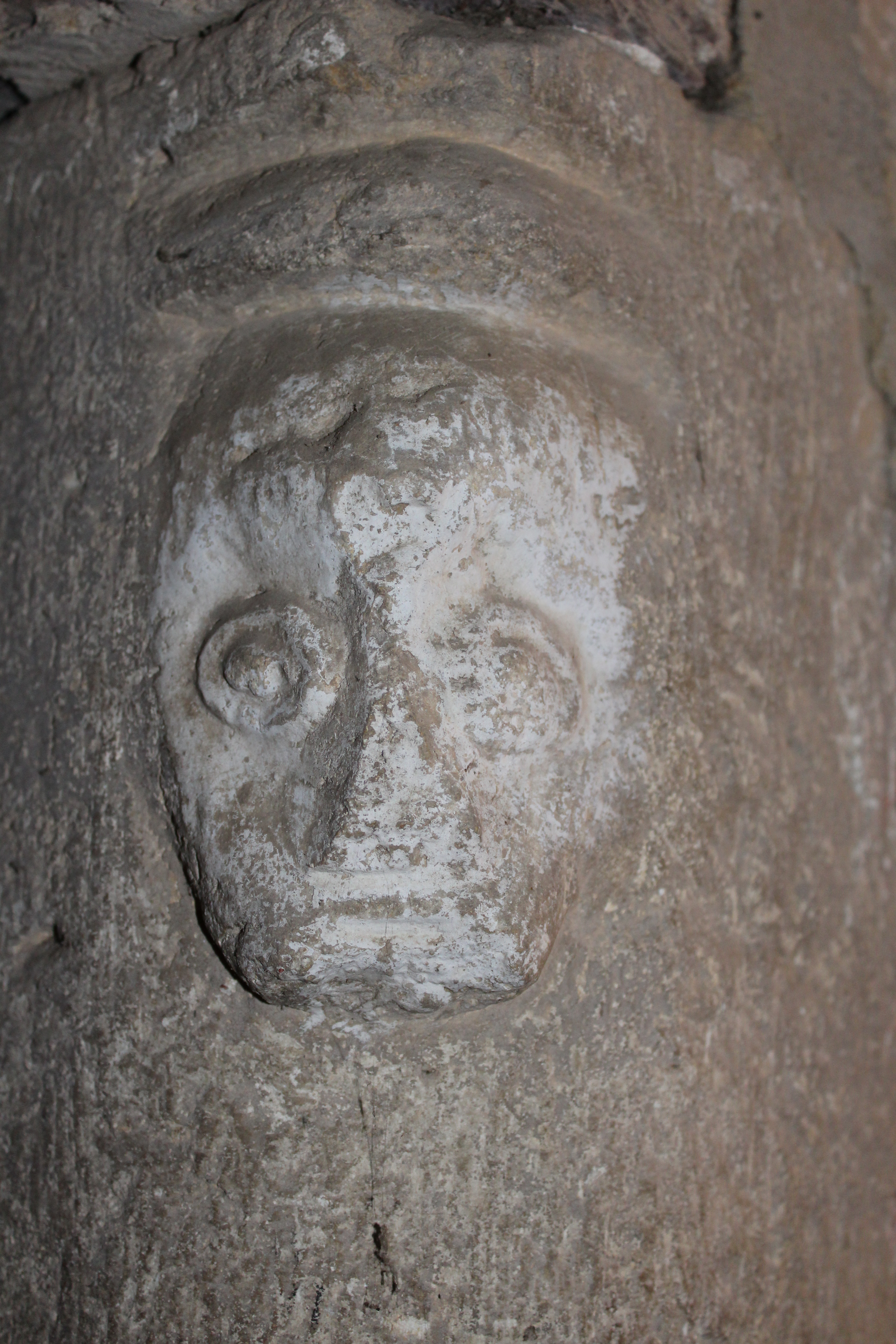 Décor de visage en haut du chambranle de la porteImmatriculation