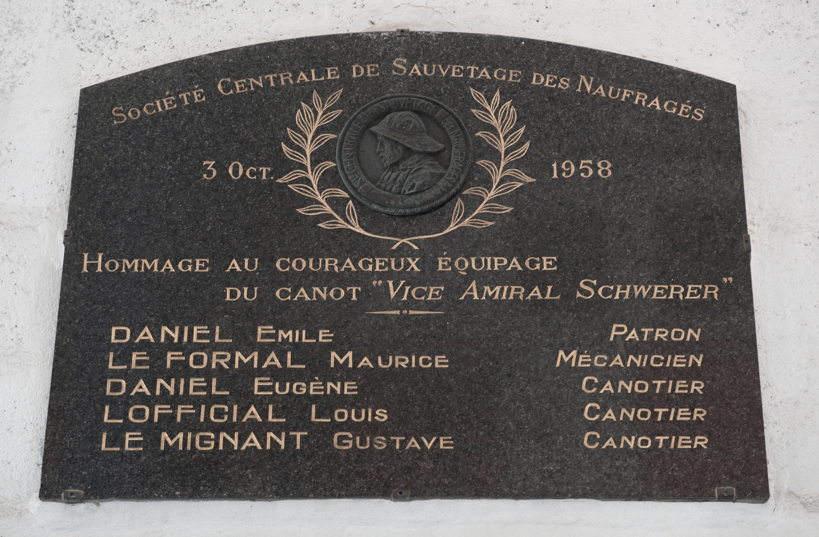 Vue de la plaque commémorative du naufrage de 1958Immatriculation