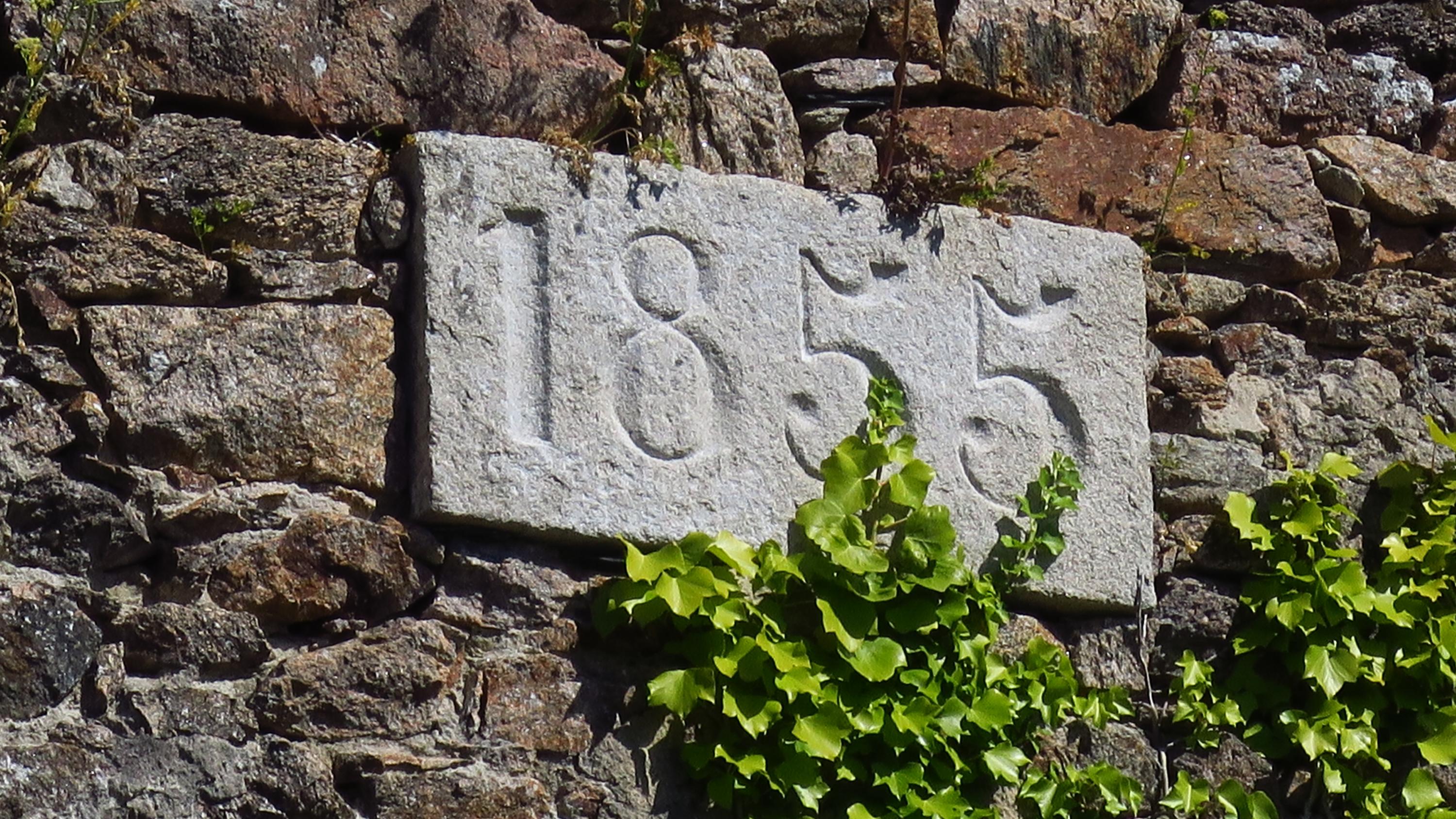 Fort central, Île-d'Houat. Magasin à poudre, date sur la façade ouestImmatriculation