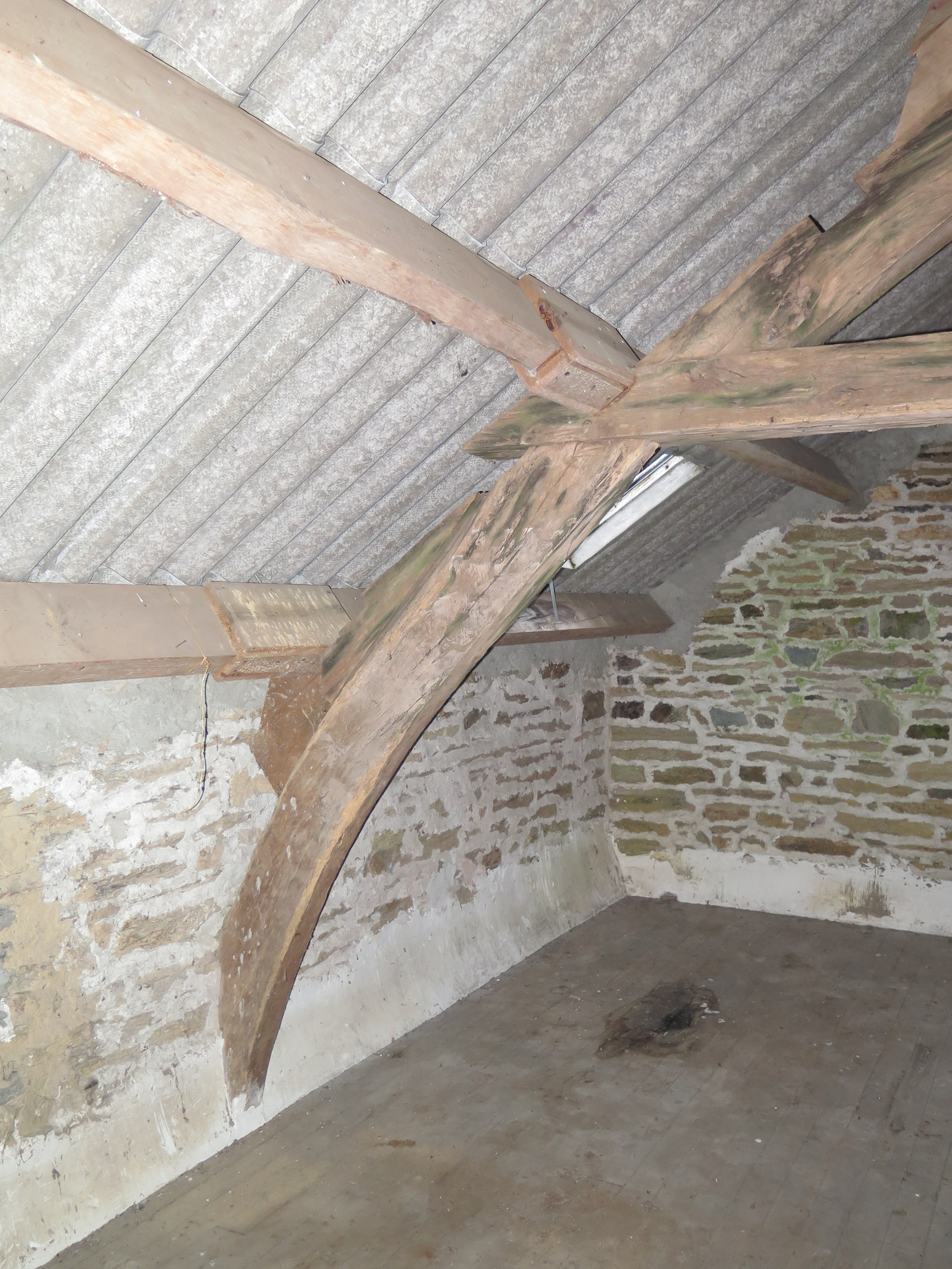 Charpente en upper-cruck, maison éclusière de MinazenImmatriculation