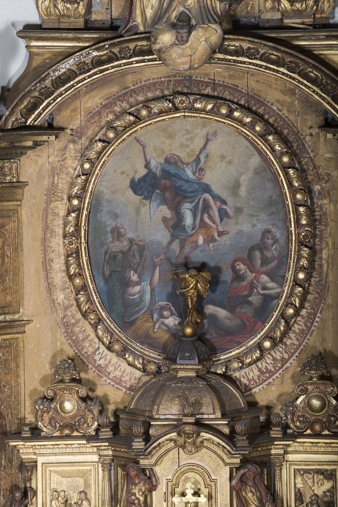 Chapelle Sainte Marie-Madeleine. Retable, 1676. Détail du tableau de l'apothéose de saint LouisImmatriculation