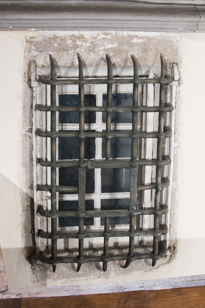Chapelle Sainte-Marie-Madeleine. Détail de l'hagioscope partiqué en hauteur dans le mur nord de la chapelle pour permettre aux soeurs de suivre les offices depuis l'infirmerieImmatriculation