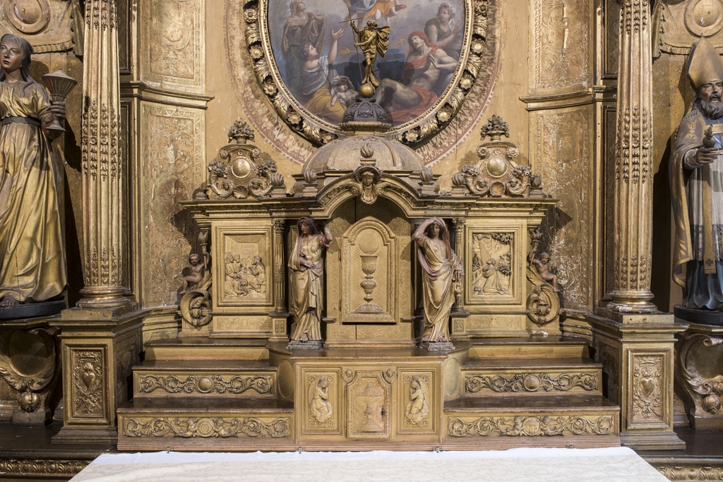 Chapelle Sainte Marie-Madeleine. Retable,1676. Détail du tabernacleImmatriculation