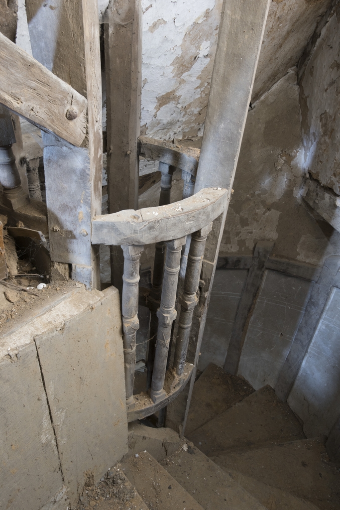 Grand corps de logis. Escalier en vis secondaire menant au grenier (au départ du grand escalier desservant les cellules)Immatriculation