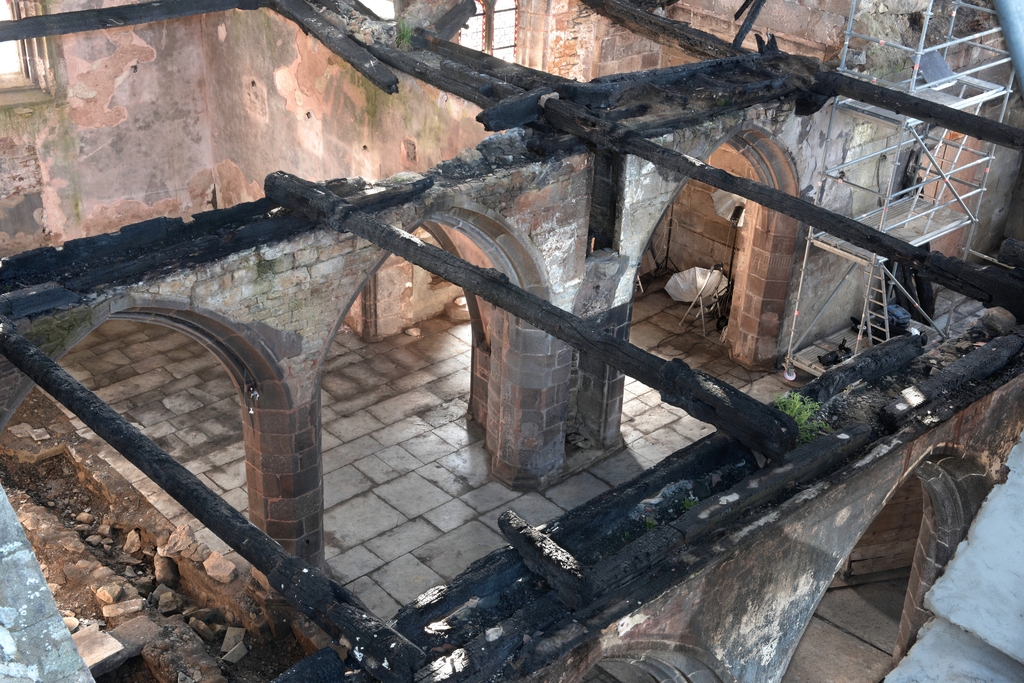 Trémel, le bourg : église paroissiale Notre-Dame, vue intérieure (après l'incendie du 21 juin 2016)Immatriculation