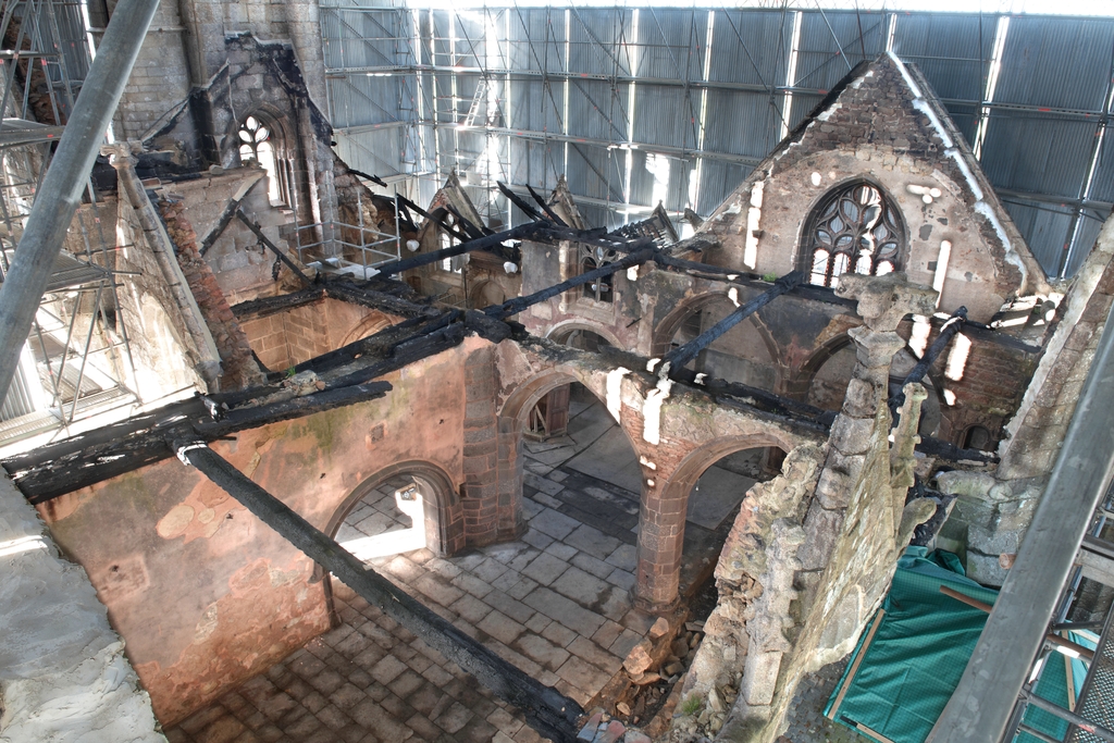 Trémel, le bourg : église paroissiale Notre-Dame, vue intérieure (après l'incendie du 21 juin 2016)Immatriculation