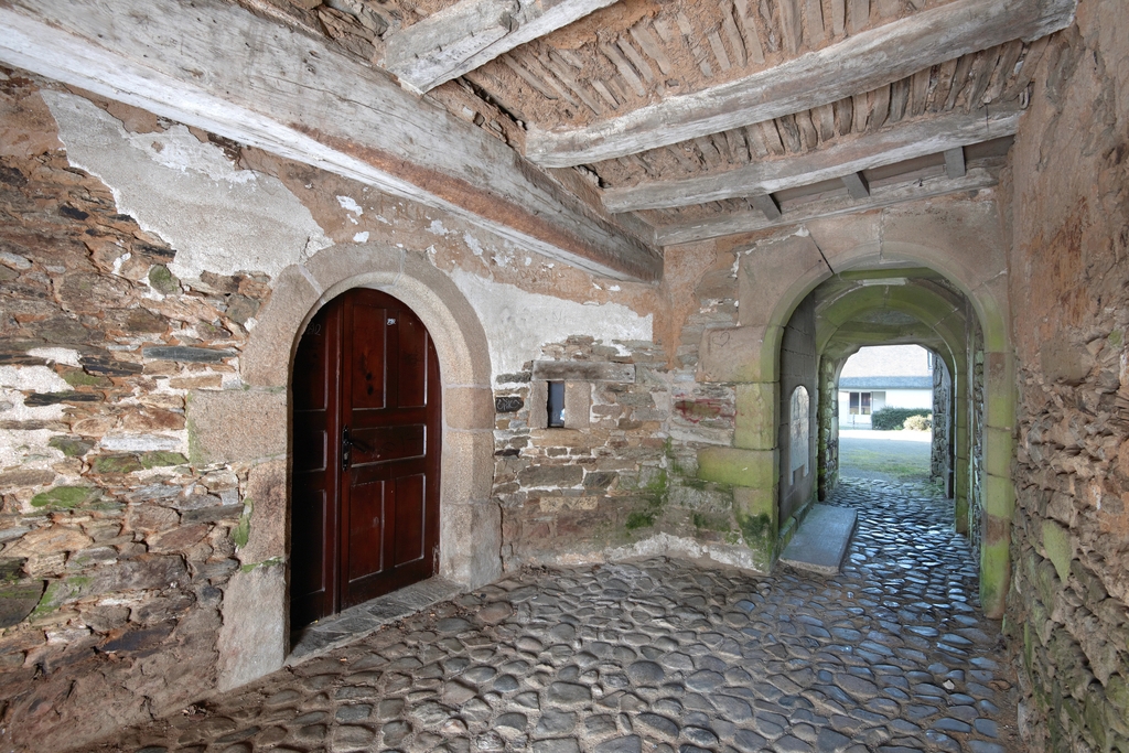 Corps de logis. Vestibule d'entrée desservant la porte de la cuisine (flanquée d'une petite ouverture), puis la porte limitant l'accès à l'escalier et à la cour arrièreImmatriculation