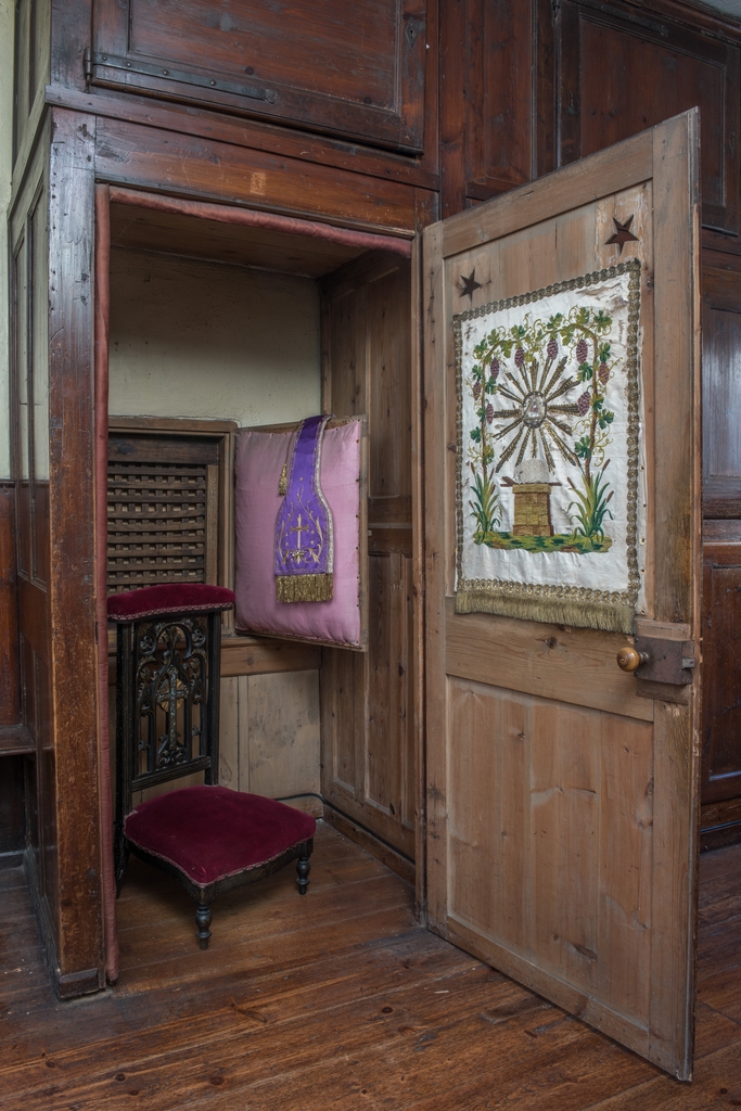Sacristie dite avant-choeur des soeurs. Confessionnal dont le parloir ouvre sur la maison voisine des prêtresImmatriculation