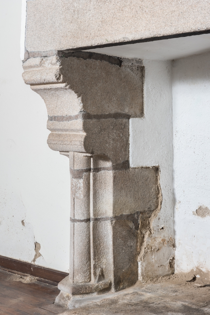 Corps de logis 17e siècle. Salle de communauté. Cheminée de la 1ère moitié du 15e siècle. Détail d'un piédroitImmatriculation