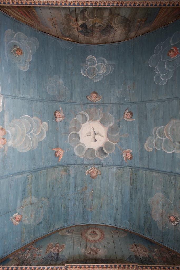 Voûte lambrissée et peinte du ciel, de têtes d'angelots et de la colombe du Saint-EspritImmatriculation