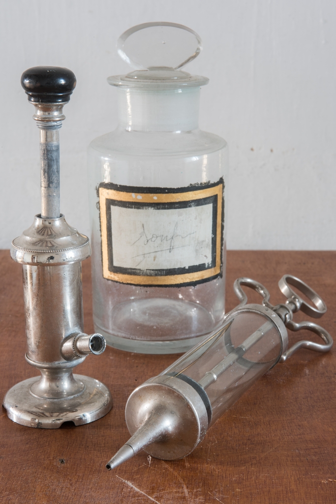 Seringue, flacon, pulvérisateur, début 20e siècle. Vue généraleImmatriculation