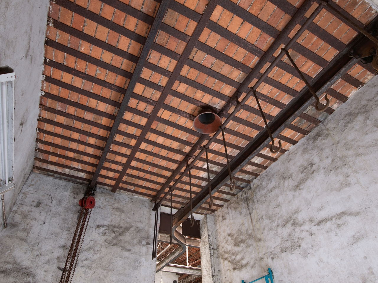 Tréguier, rue du Guindy : abattoir public municipal, halle, vue intérieure, ensemble de crocs de boucherImmatriculation