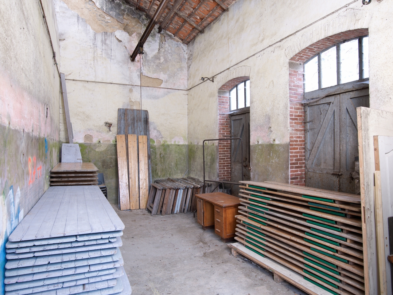 Tréguier, rue du Guindy : abattoir public municipal, halle, vue intérieure, portes extérieures et monorailImmatriculation