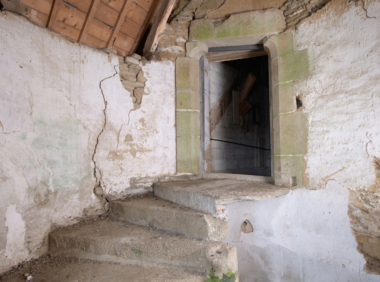 Corps de logis. Escalier en vis en pierre. Porte à linteau sur coussinets ouvrant sur le combleImmatriculation