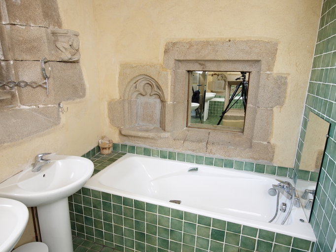 Tréguier, 22 rue Colvestre : manoir urbain dit "Maison de Jean V", deuxième étage, chapelle privée, hagioscope et niche-crédence donnant sur la "salle haute sous charpente" (sur rue)Immatriculation
