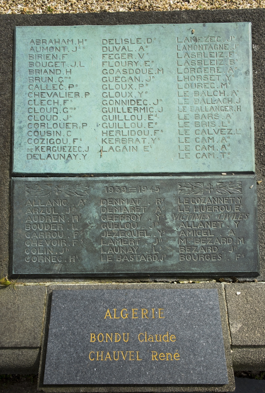 Tréguier, Place du Général Leclerc : monument aux morts, plaque de bronze donnant le nom des morts pour la FranceImmatriculation