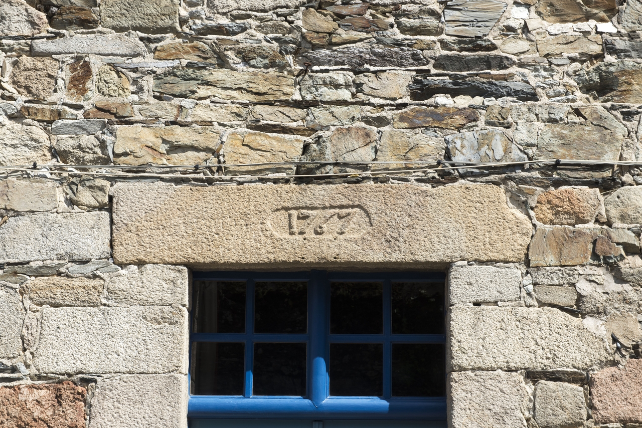 Façade ouest sur rue. Détail de la date, 1767Immatriculation