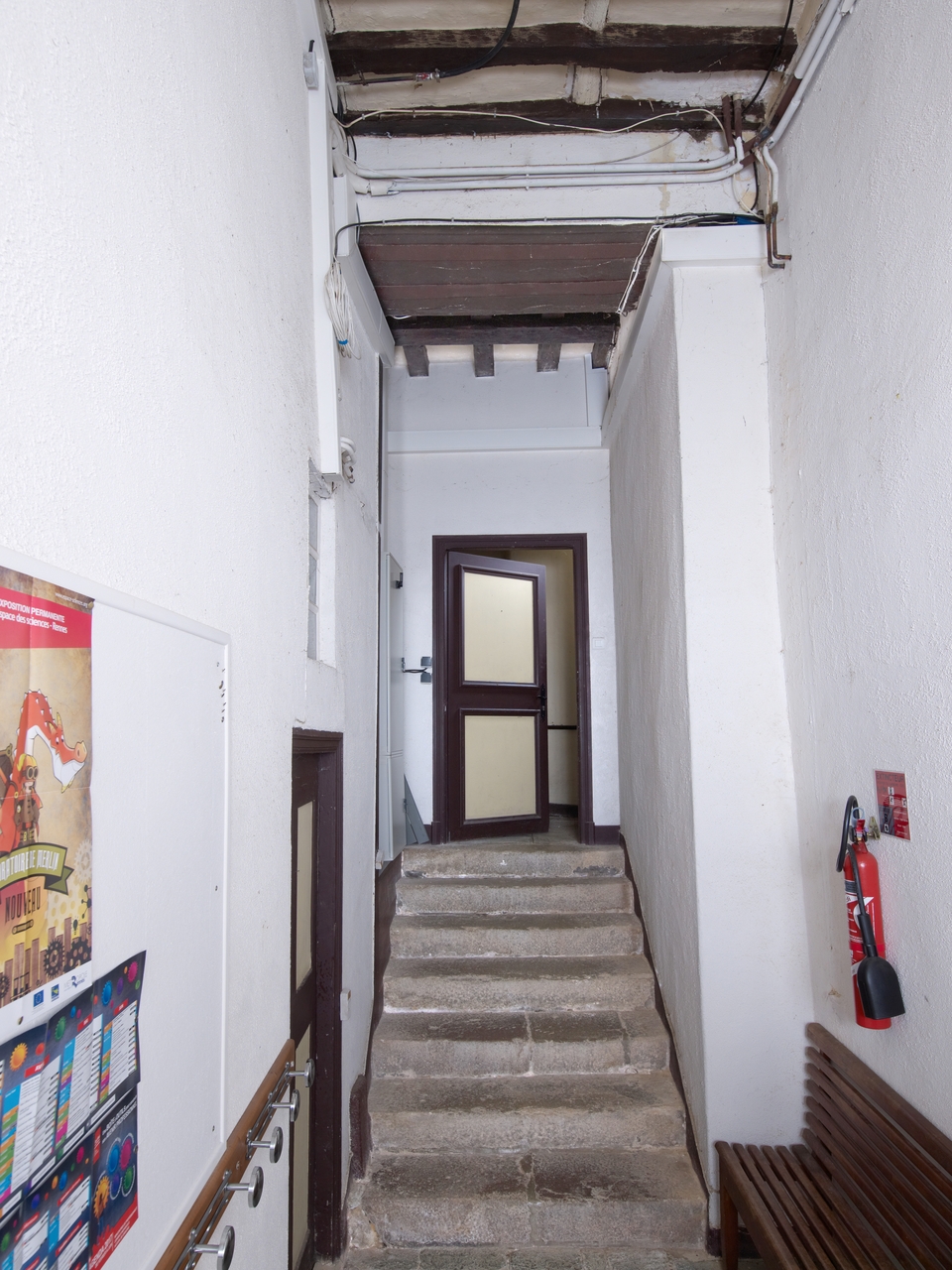 Tréguier, boulevard Anatole Le Braz : palais épiscopal aujourd'hui mairie et bibliothèque, corps principal, couloir d'accès depuis le perronImmatriculation