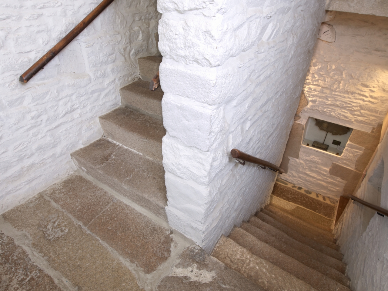 Escalier rampe sur rampe. Palier intermédiaire entre le rez-de-chaussée et le 1er étage. Vue généraleImmatriculation