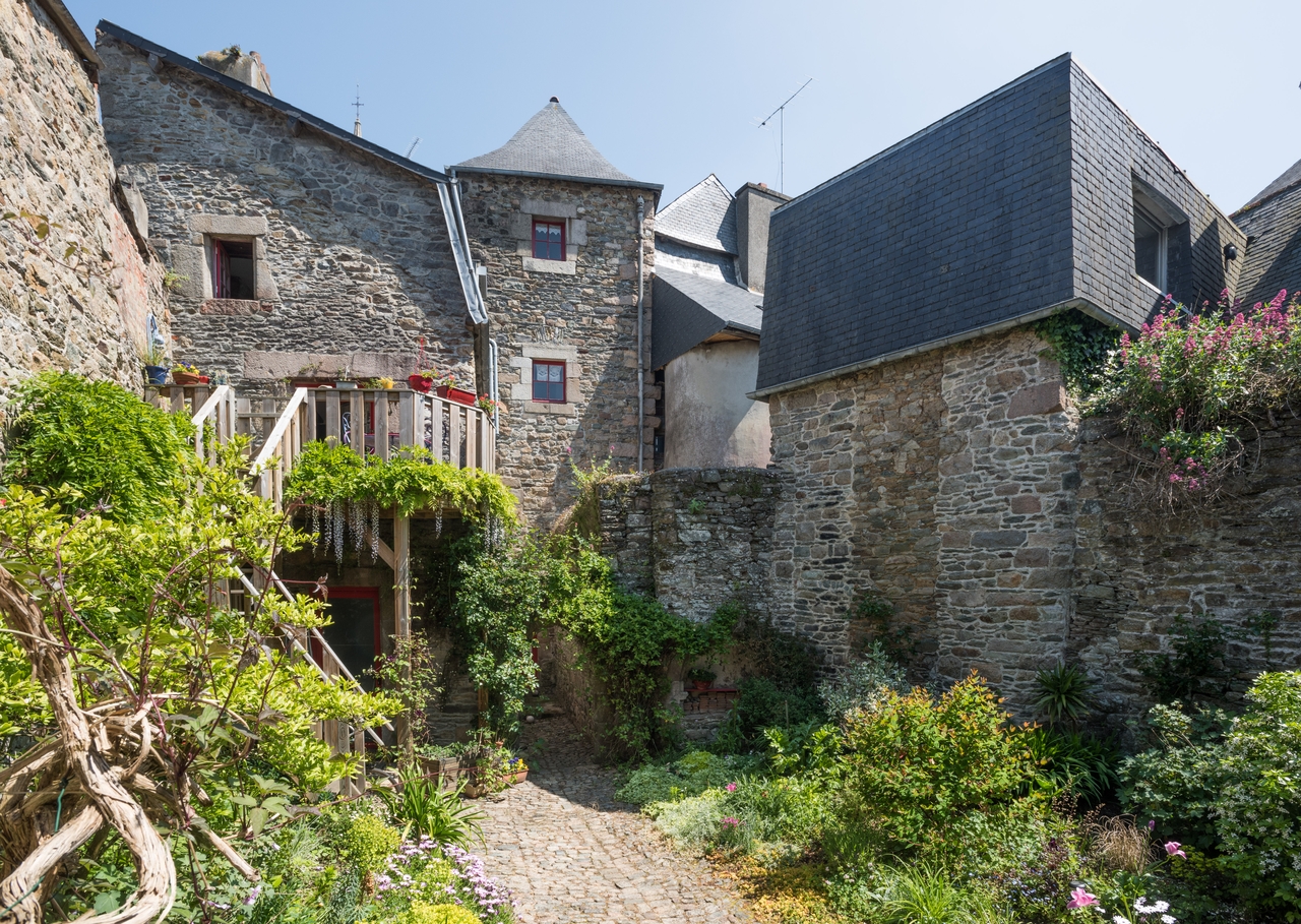 Vestiges du grand corps de logis disparu dans la cour du n°22 place du Martray : mur sud et pignon est avec sa grande crédence-évier et sa porte en arc briséImmatriculation