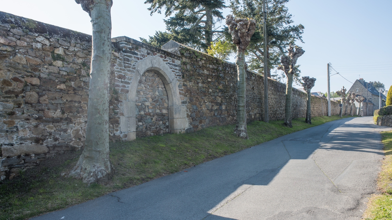 Rue de Kernabat. Mur d'enclos de l'ancien couvent des Ursulines. Vue générale sud-estImmatriculation