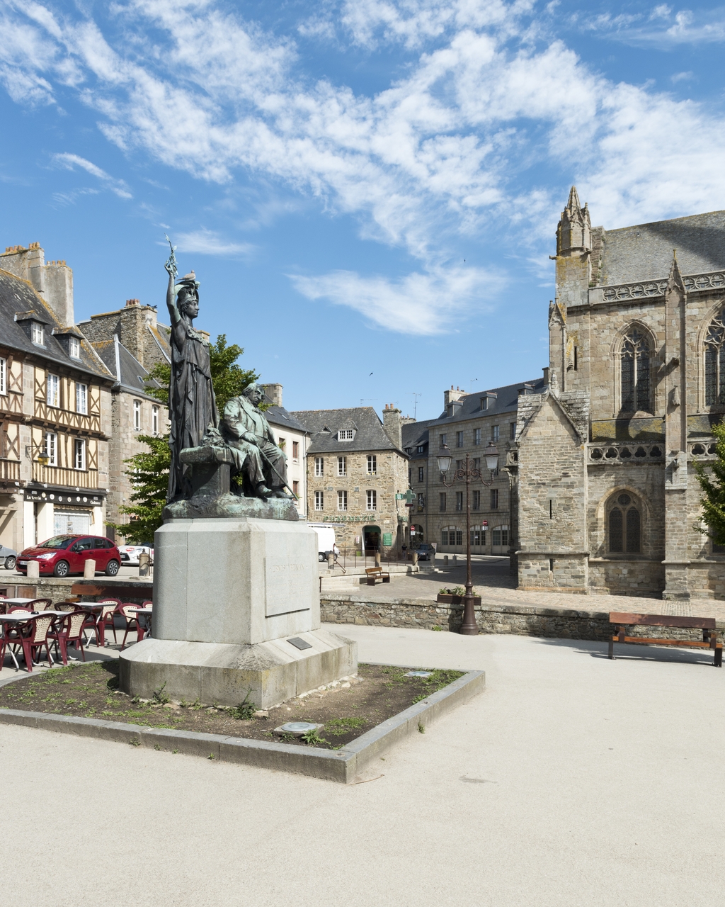 Tréguier, place du Martray : vue générale de la statue d'Ernest Renan et de la déesse Pallas AthénaImmatriculation