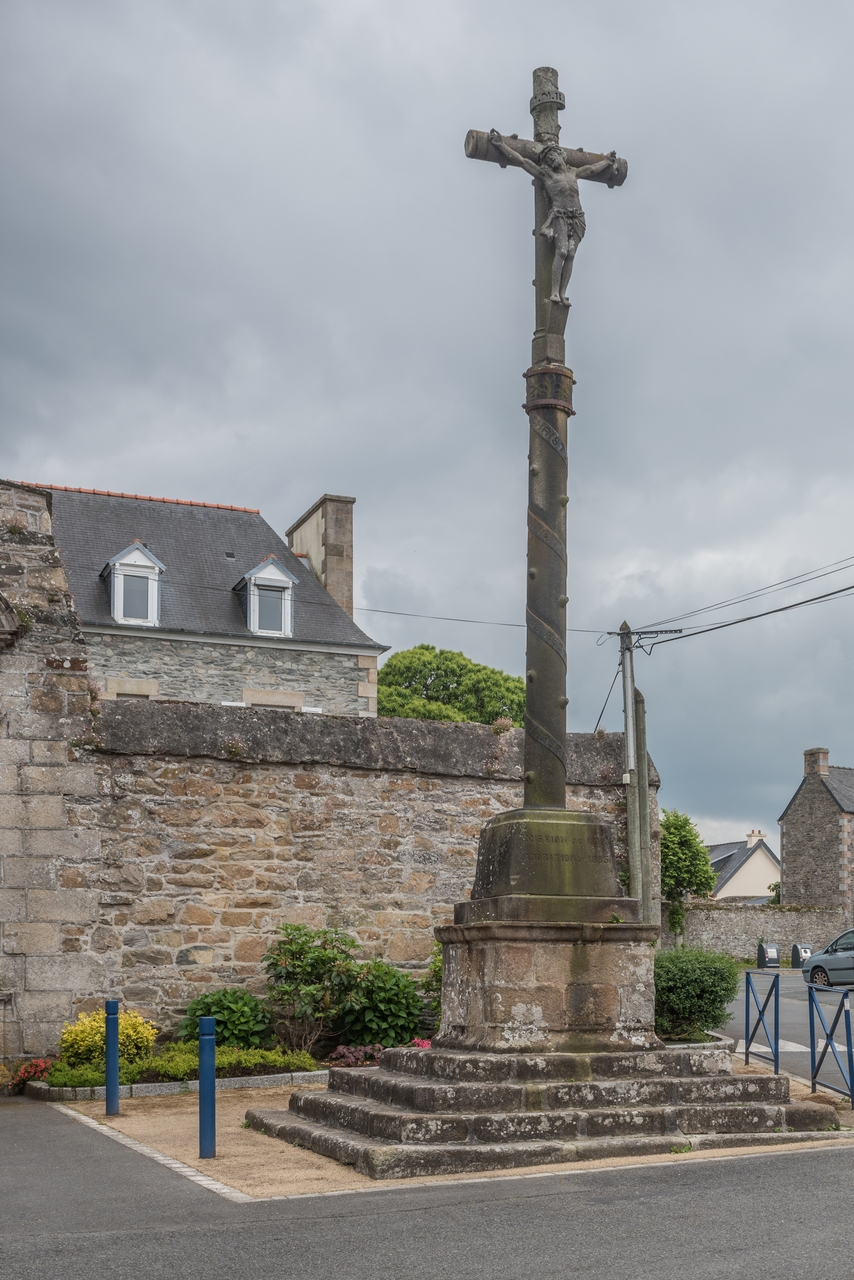 Rue de Minihy. Croix érigée devant l'ancien couvent des Ursulines en 1885 sur un soubassement daté 1819. Vue généraleImmatriculation