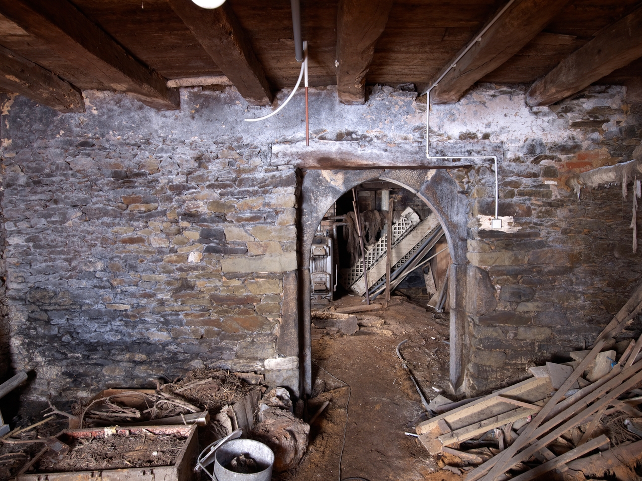 Sous-sol. Mur de refend et revers de la large porte. Vue généraleImmatriculation