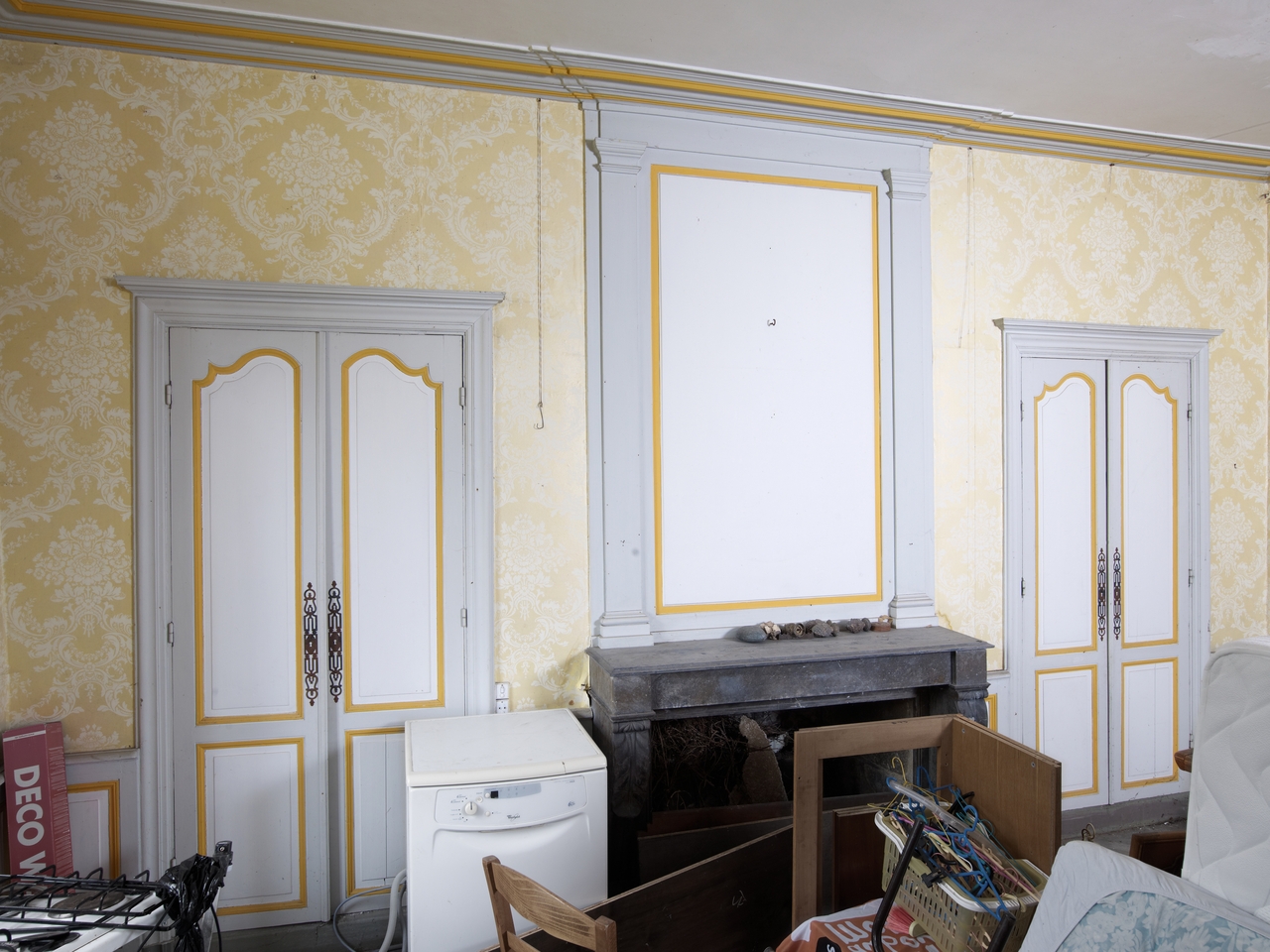 Appartement du rez-de-chaussée. Salon. Cheminée à trumeau encadrée de deux placards murauxImmatriculation