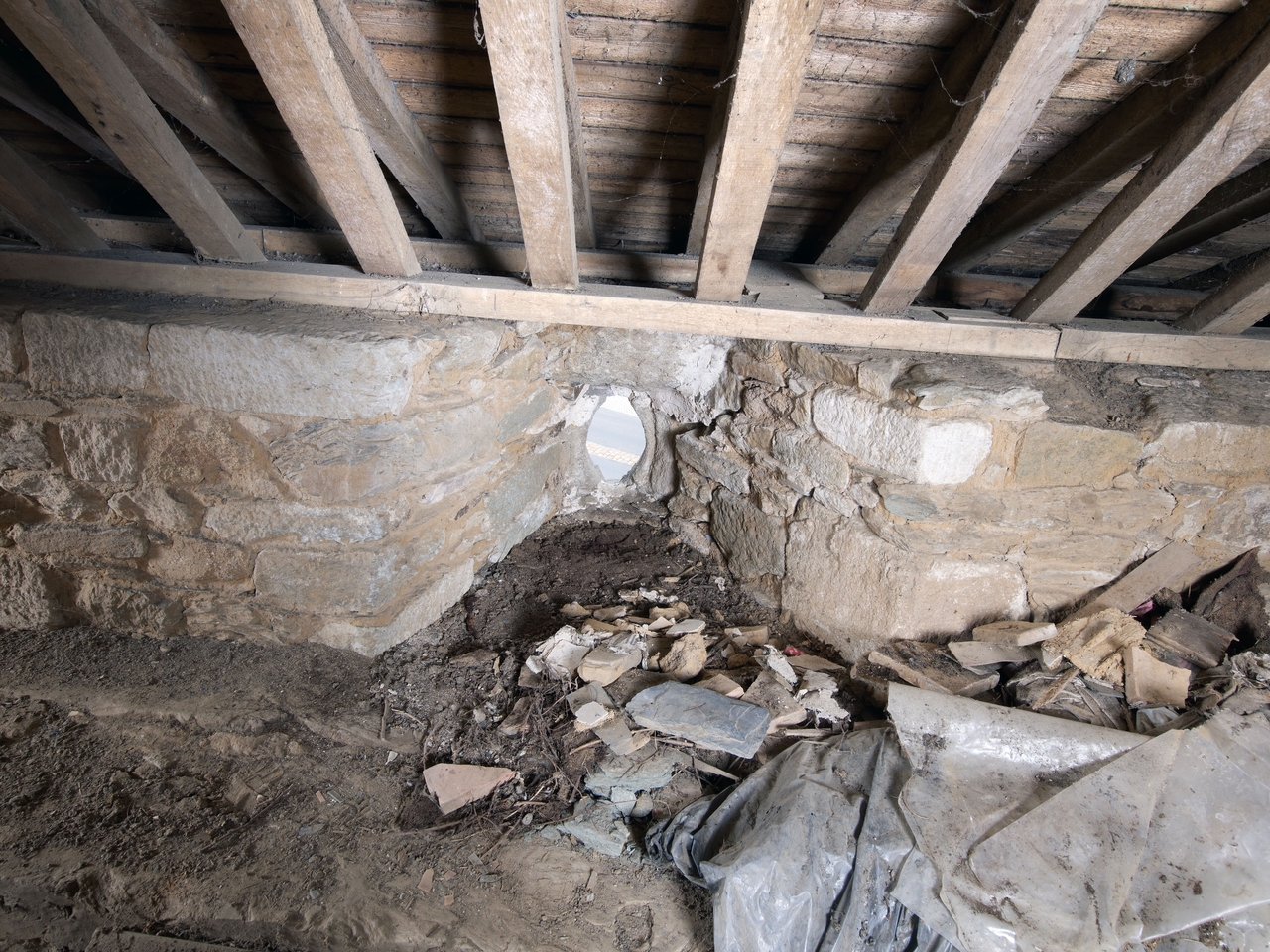 Tréguier, boulevard Anatole Le Braz : palais épiscopal aujourd'hui mairie et bibliothèque, aile sud-est, étage de comble, détail du chemisage du bâtimentImmatriculation