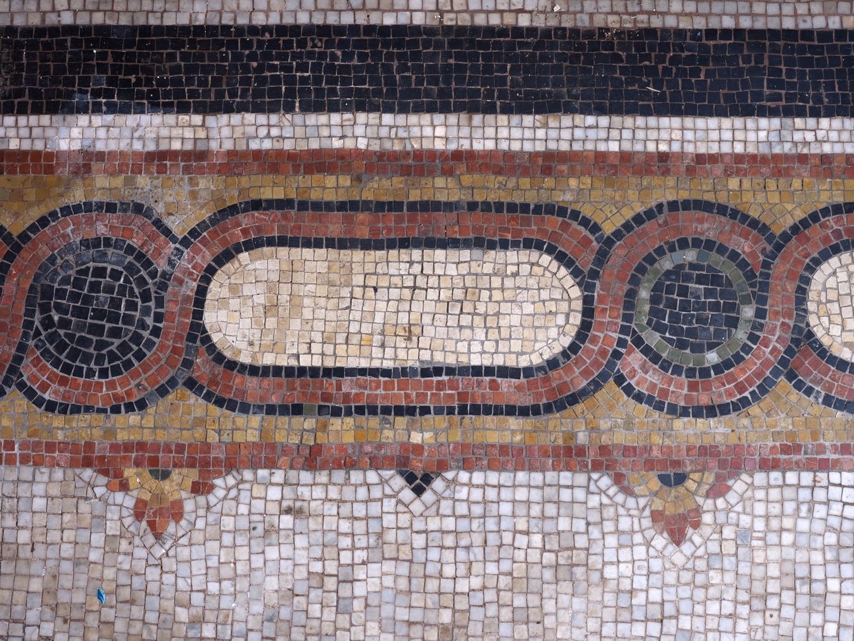 Salon. Sol en mosaïque de marbre. Détail d'une bordureImmatriculation