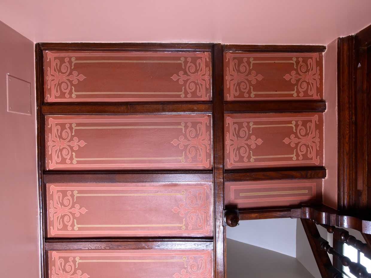 Vestibule d'entrée. Détail du plafond à caissons ornés de panneaux à motifs de style Art nouveauImmatriculation