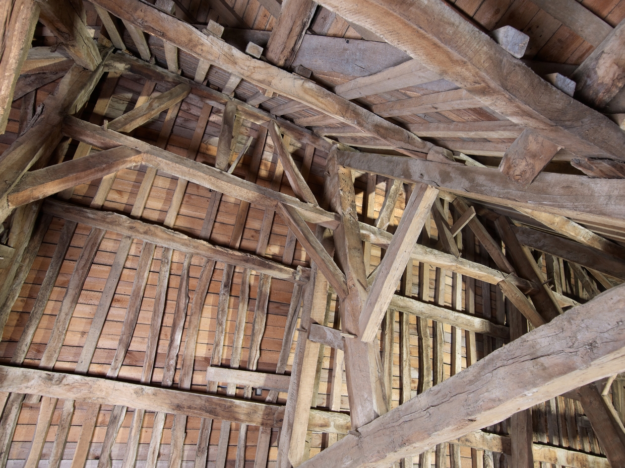 Tréguier, boulevard Anatole Le Braz : palais épiscopal aujourd'hui mairie et bibliothèque, étage de comble, charpenteImmatriculation